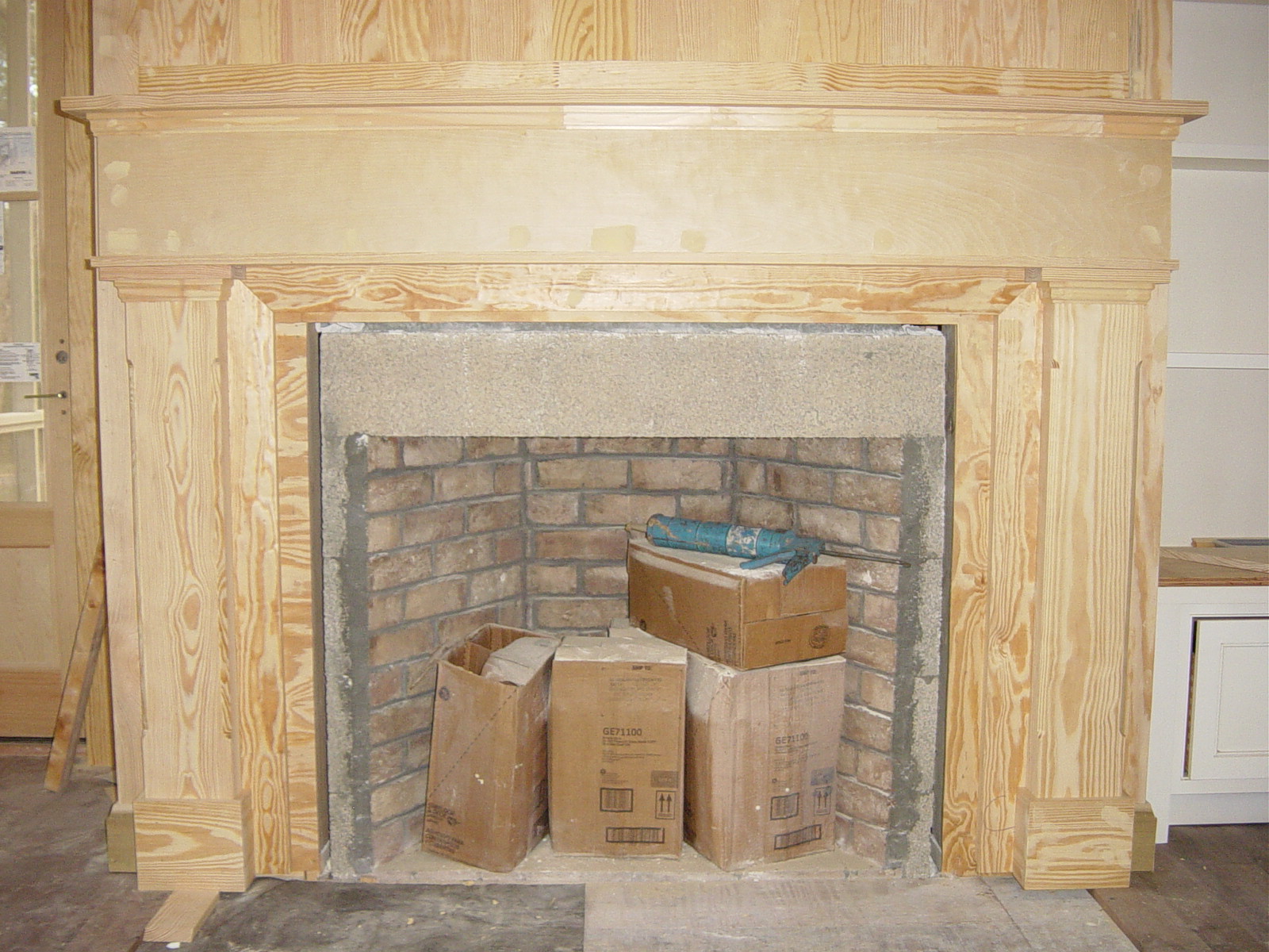 February 6, 2009 -- The mantle is almost finished now. It will have a slate surround and hearth and will be quite handsome when finished. | ![]() |