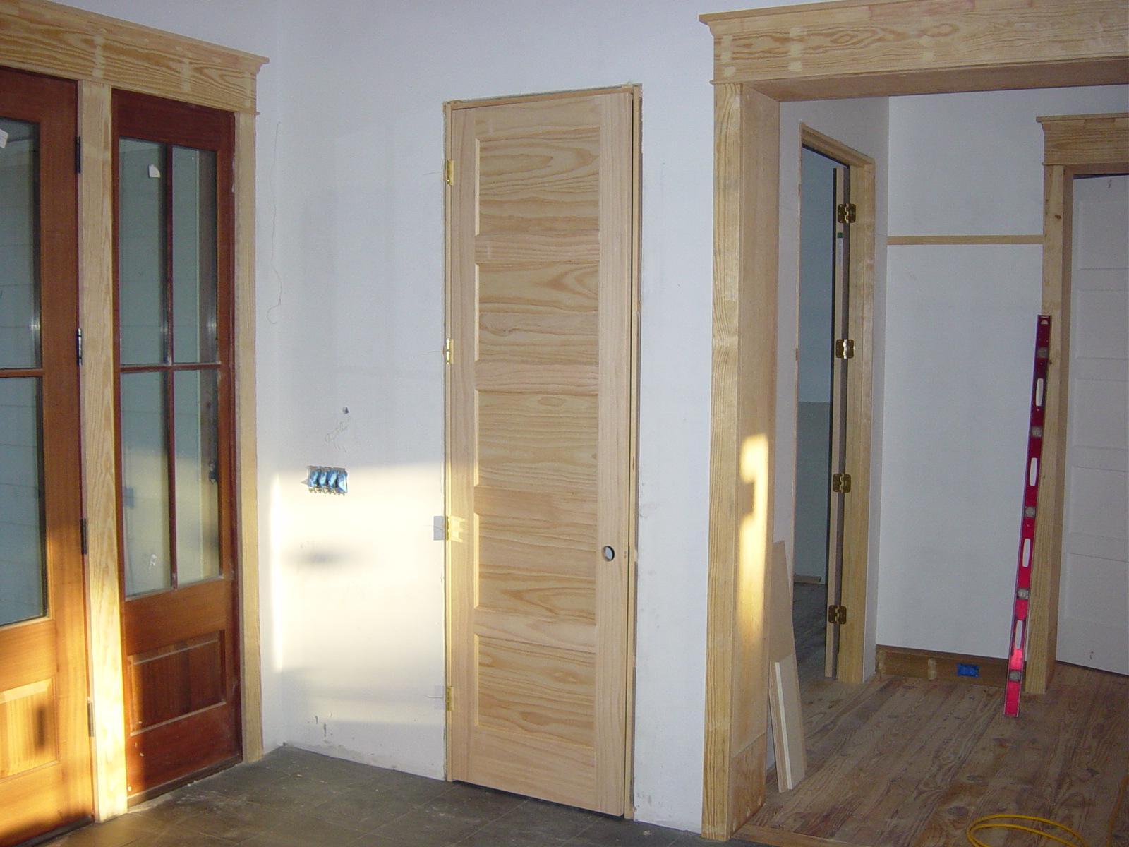 February 11, 2009 -- Most of the interior doors were installed today. This is a stainable wood door in the foyer. | ![]() |