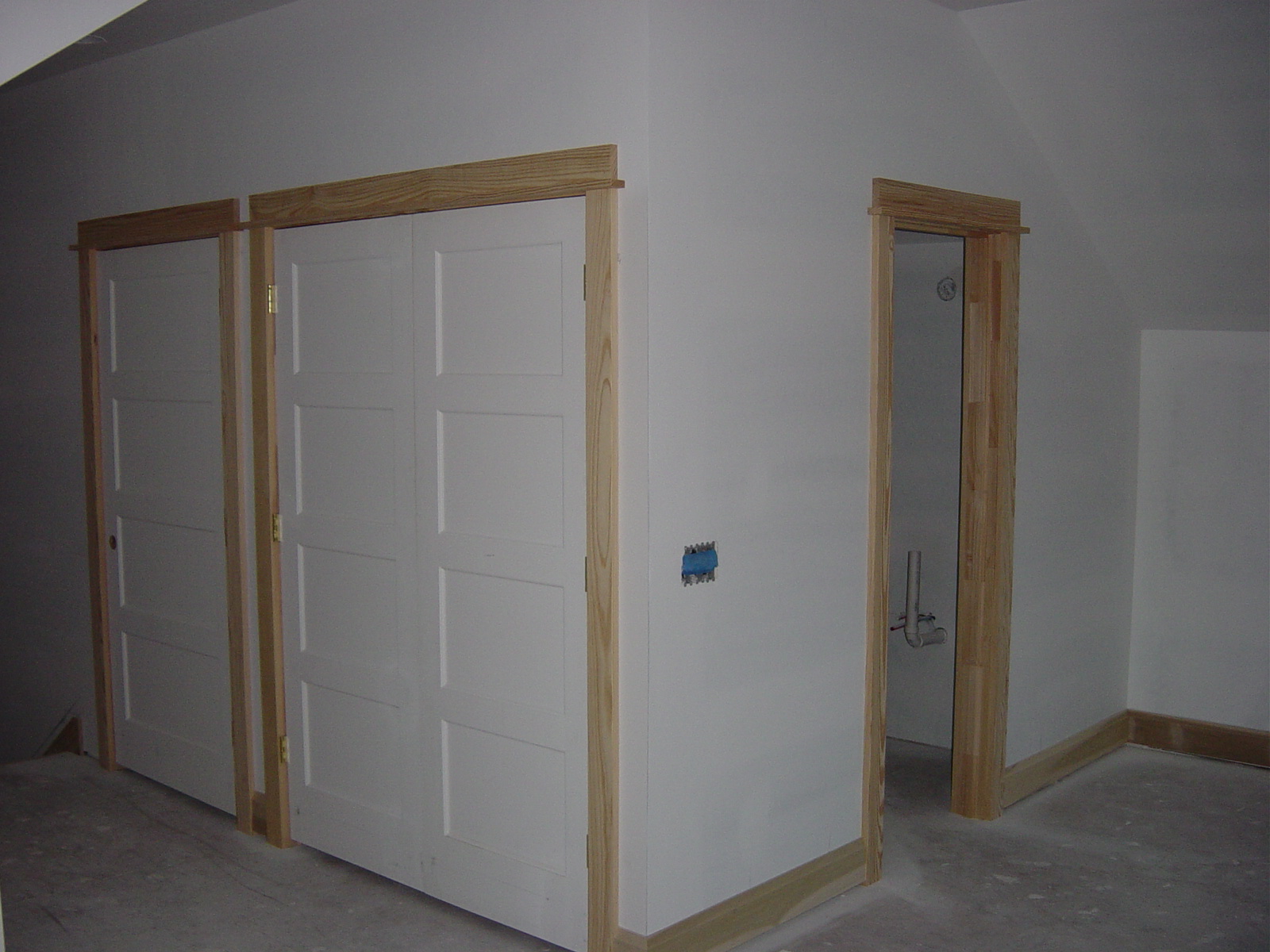 February 17, 2009 -- Here are the finished trimmed doors in the studio. These are shorter doors so they only have 4 panels instead of 5. | ![]() |
