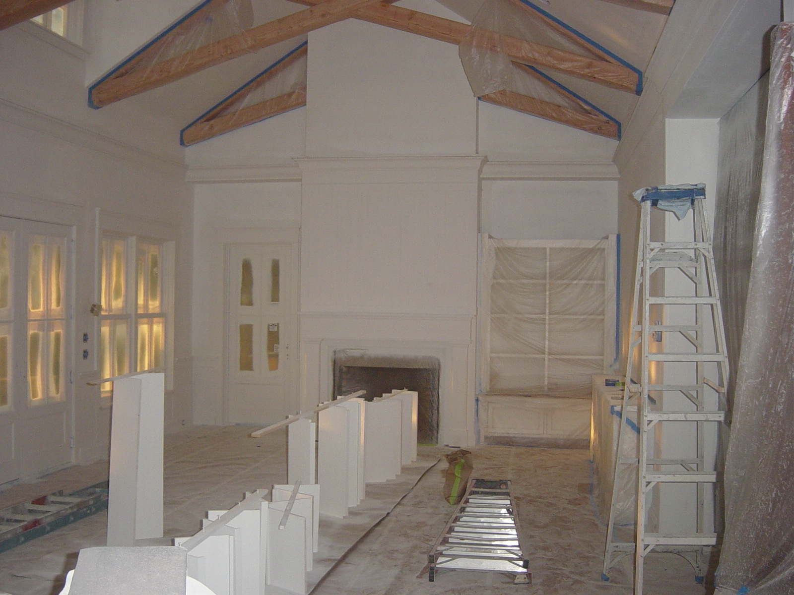 March 11, 2009 -- This is the great room all primed in as well as some of the shelving for the pantry closet. | ![]() |