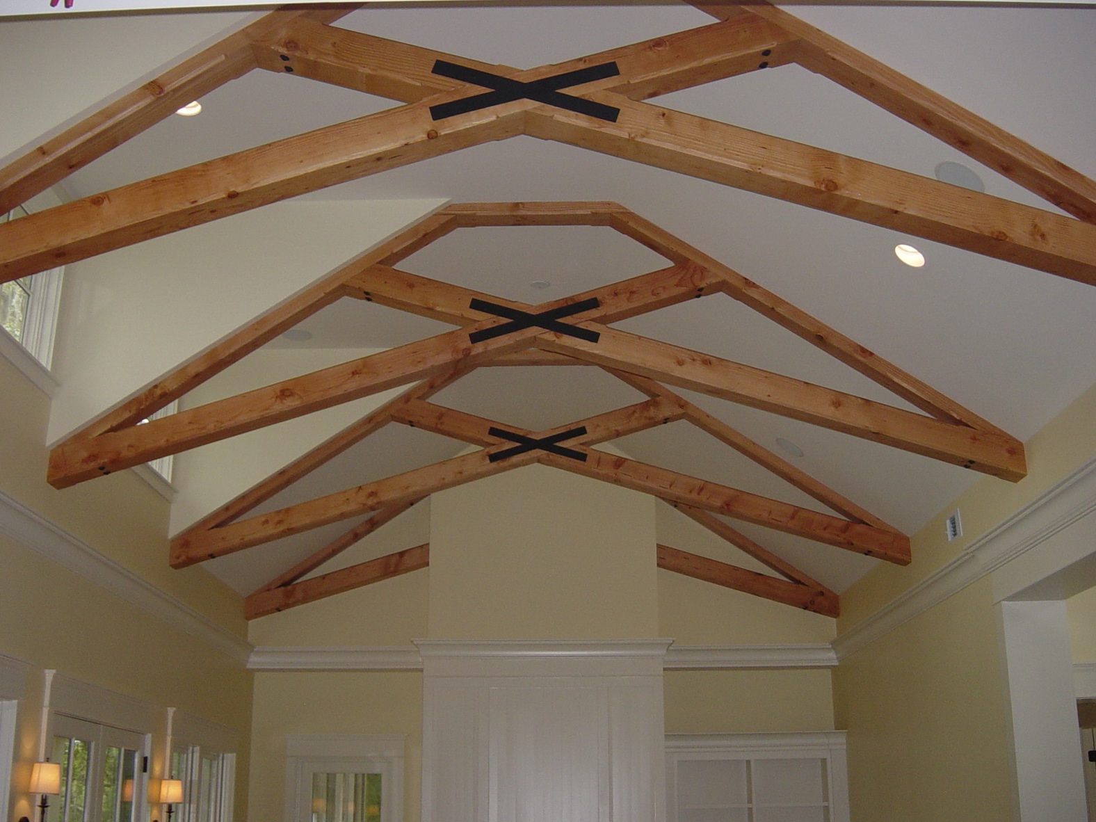 April 14, 2009 -- This is the view of the beam trusses from the kitchen.