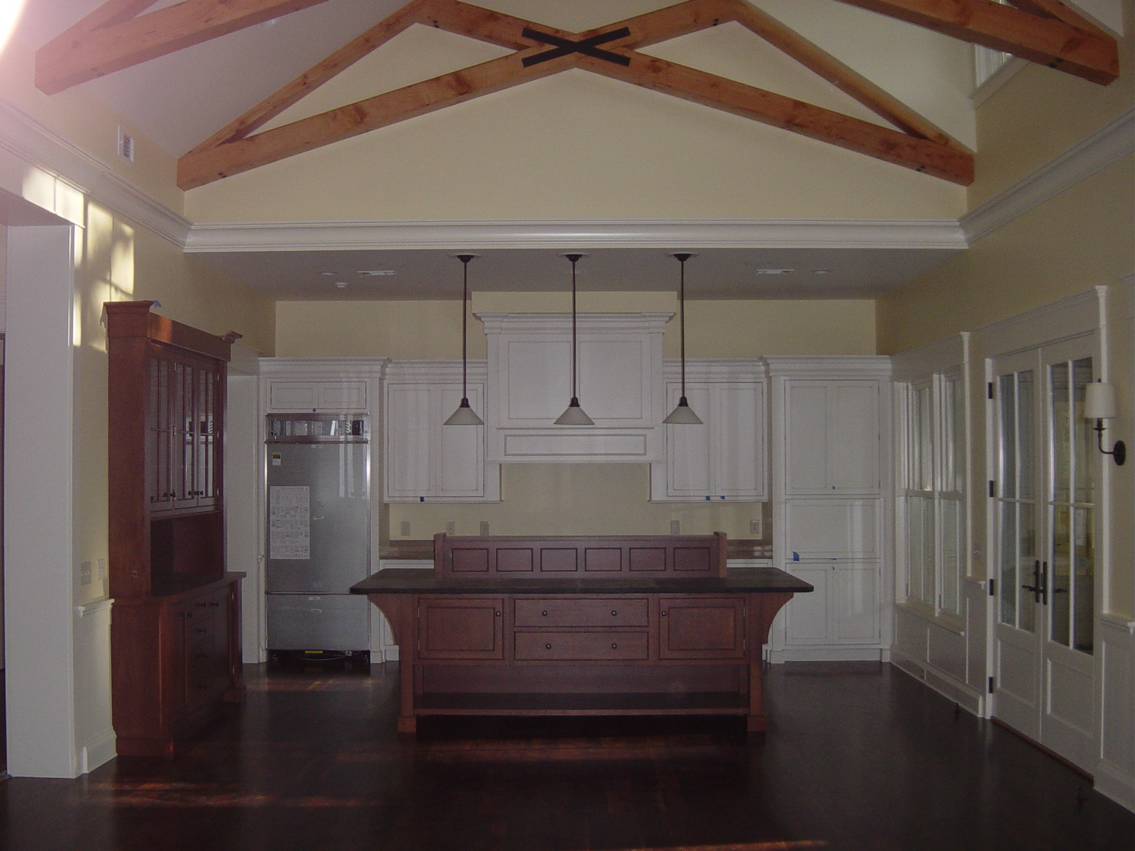 April 15, 2009 -- The pendant lights are now installed. Just a couple more pieces of cabinet trim and panels on the refrigerator and the kitchen is complete. | ![]() |