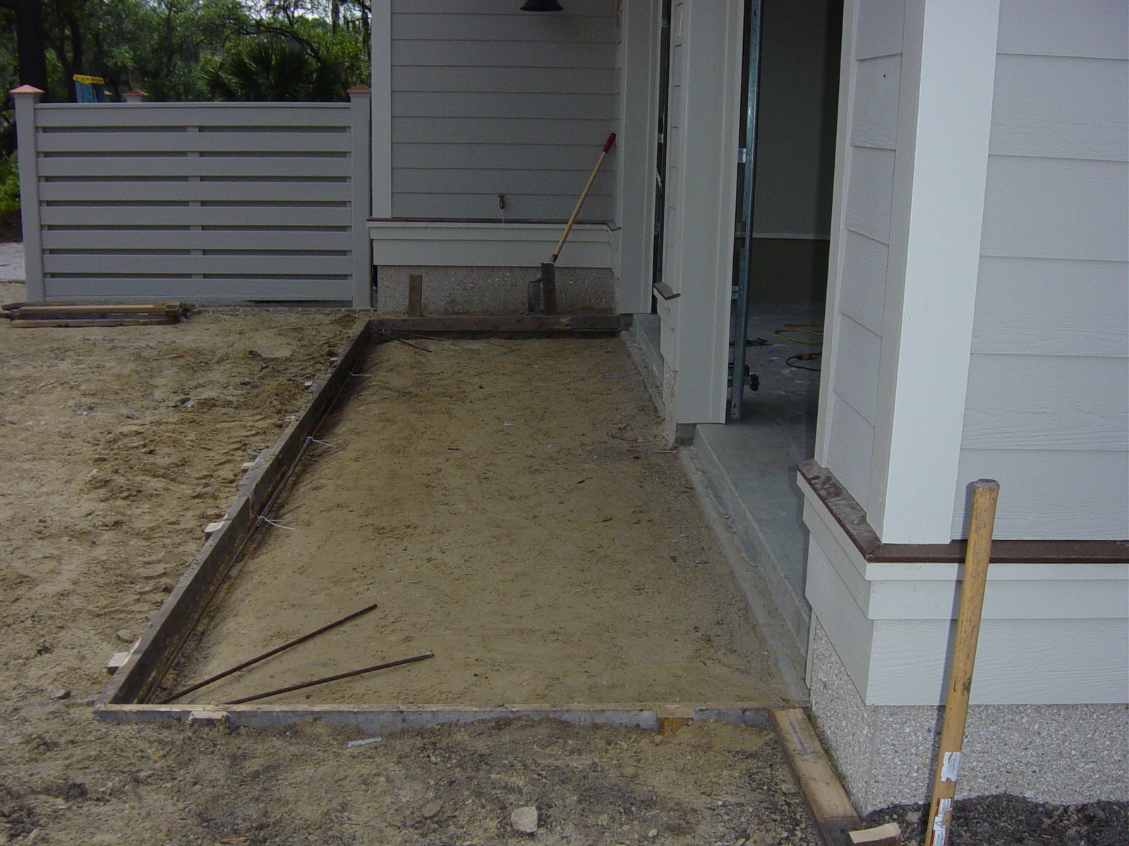 May 13, 2009 -- The apron slab in front of the garage is dug out, formed up and ready for concrete. | ![]() |