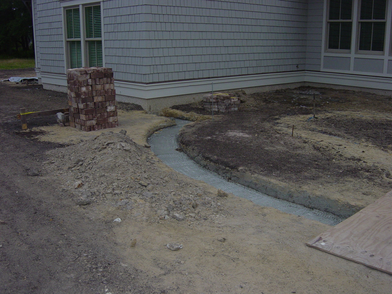 May 13, 2009 -- This is looking towards the garage. The curve is elliptical and will be a real challenge to lay brick to. | ![]() |