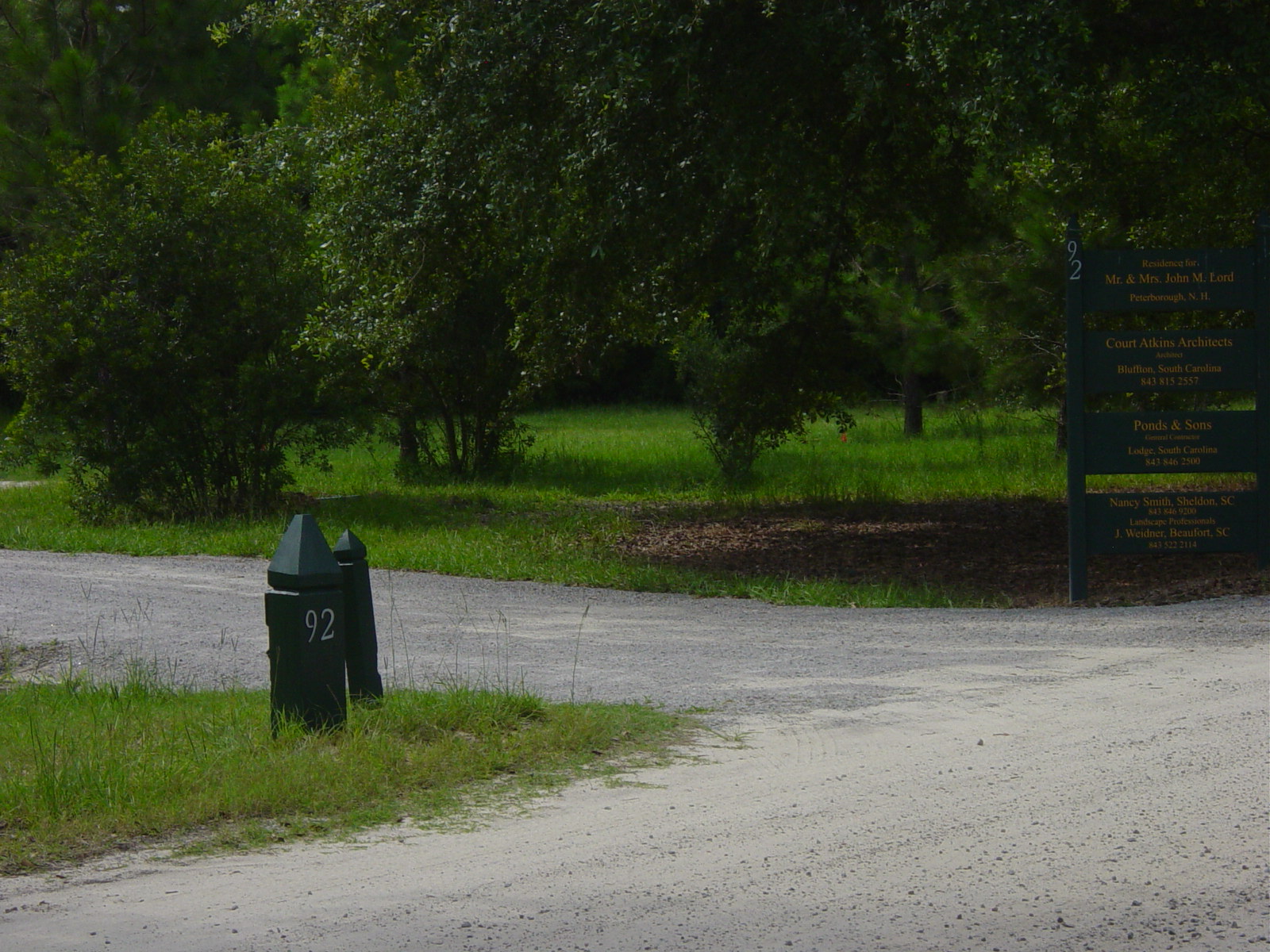 July 13, 2009 -- The post and 911 address numbers are now up. Since houses can't be seen from the road the address must be posted at the end of the drive. | ![]() |