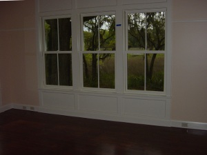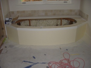 April 1, 2009 -- Here is the tub skirt in the master bath. It is painted an alternate trim color as an accent. The tub will be installed soon.
