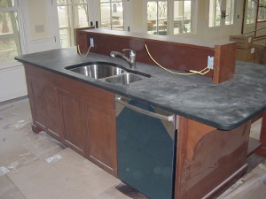 April 7, 2009 -- This is a view of the backside of the island. The outlets will be in soon and it will look even better once door pulls are intalled.
