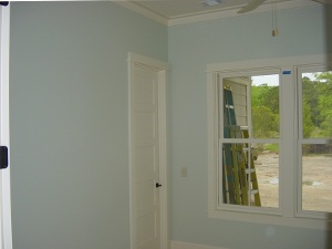 April 15, 2009 -- Guest bedroom 3 also has its first topcoat on. This is a thinned paint that allows some of the grain of the wood to show through.