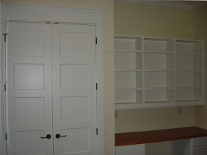 April 14, 2009 -- Here you can see the owner's entry closet and the computer desk. The desk has a maple top.