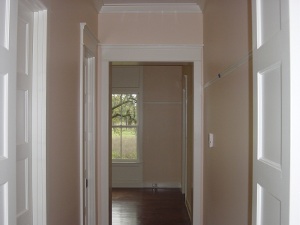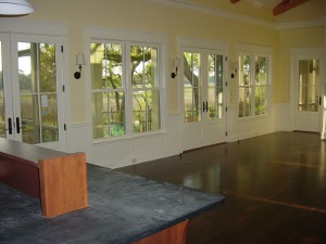 April 14, 2009 -- All of the floors are uncovered and paint finished as well as hardware installed. This is the north gallery with the study doors on the left.