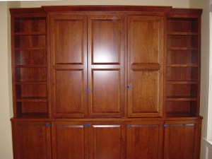 April 14, 2009 -- The TV cabinet and bookshelves in the study are nearly complete now. They just need their door hardware to be finished.