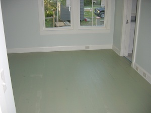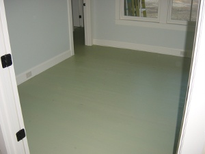 April 15, 2009 -- The guest bedroom 2 floor has one top coat on it now. It gets the next top coat tomorrow and will then be finished.