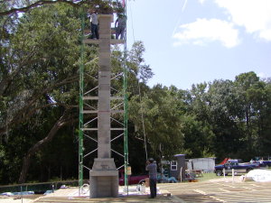 August 4, 2008 -- The chimney prefab is complete as is the bishops cap at the top. The chimney itself will be stuccoed later.