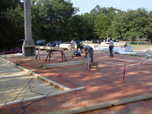 August 4, 2008 -- The porch decking is nearly complete. It has to be done at this stage because columns for the roof rest on the deck.