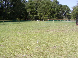 July 1, 2008 -- The power will be run from the transformer (the big green box) along the white flags to the house.
