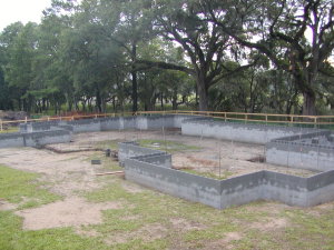 July 18, 2008 -- The footers have been cleaned where the block was omitted for the dirt trucks. It will have block laid on it early next week.