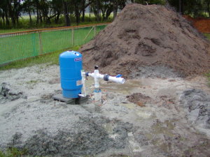 July 11, 2008 -- The well was drilled a day or two ago. Once the garage is finished, the tank and control box will be moved into the garage.