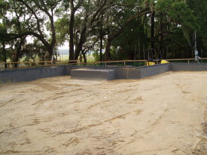 July 29, 2008 -- The garage floor is poured and we have had a rain shower. The white pipes are for water from the well.