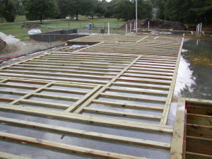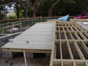 July 29, 2008 -- The house has been stripped with pressure treated boards. A subfloor will be installed over them.