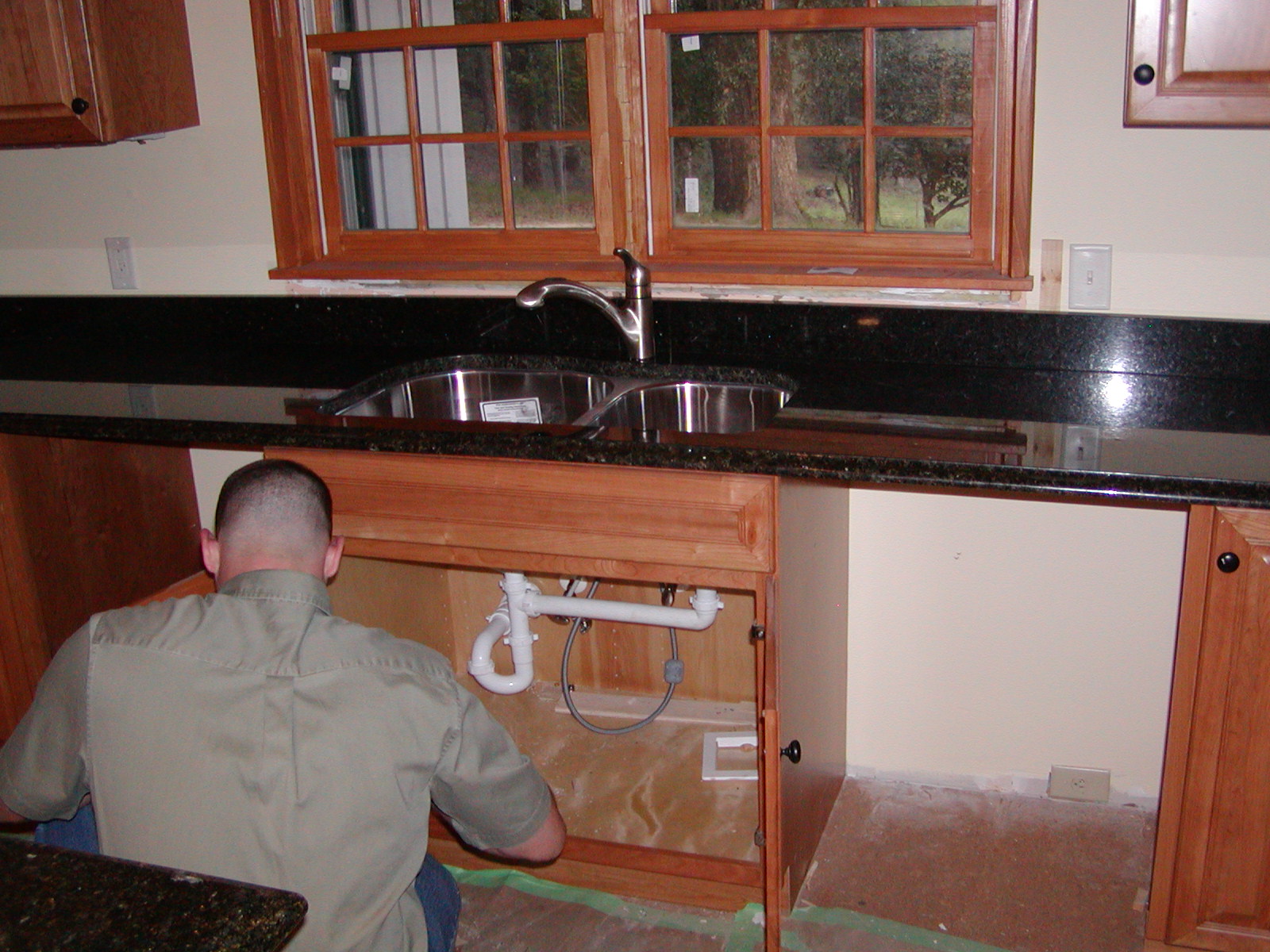 September 4, 2007 -- The sink is plumbed. Two dishwashers will be installed: one on each side of the sink. | ![]() |