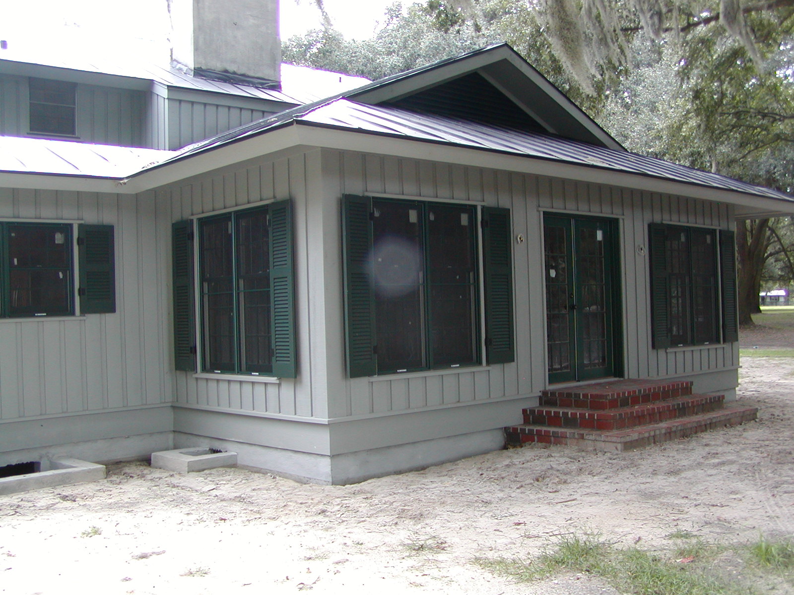 September 22, 2007 -- The addition now has shutters. The shutter dogs will be installed soon. An access cover will be built for the under house access opening on the lower left corner of the photo. | ![]() |