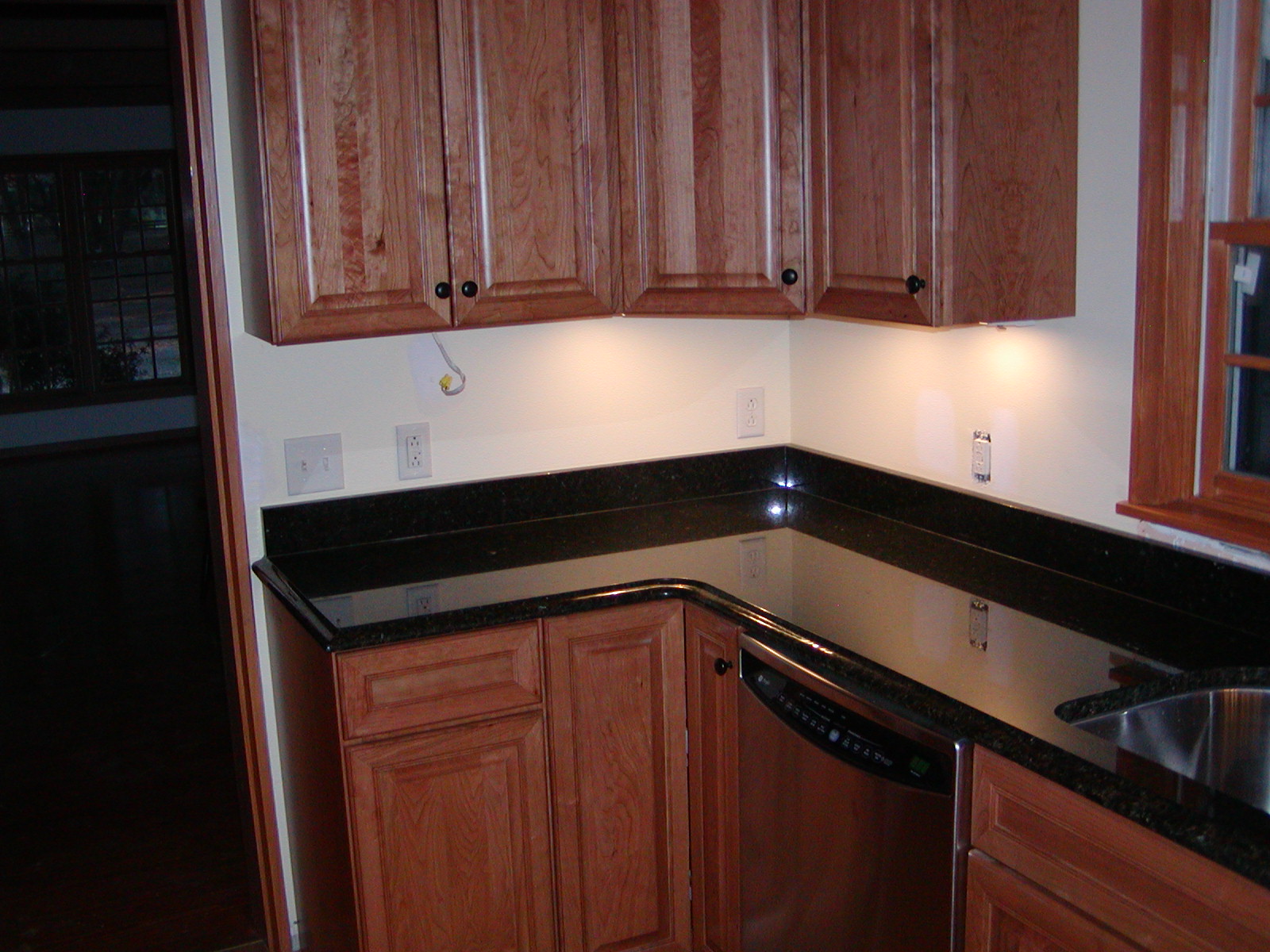 October 11, 2007 -- The last cabinets finally came in and were installed. The undercounter light still needs to go under the new cabinet (left on the top). You can see the wire for the light. | ![]() |