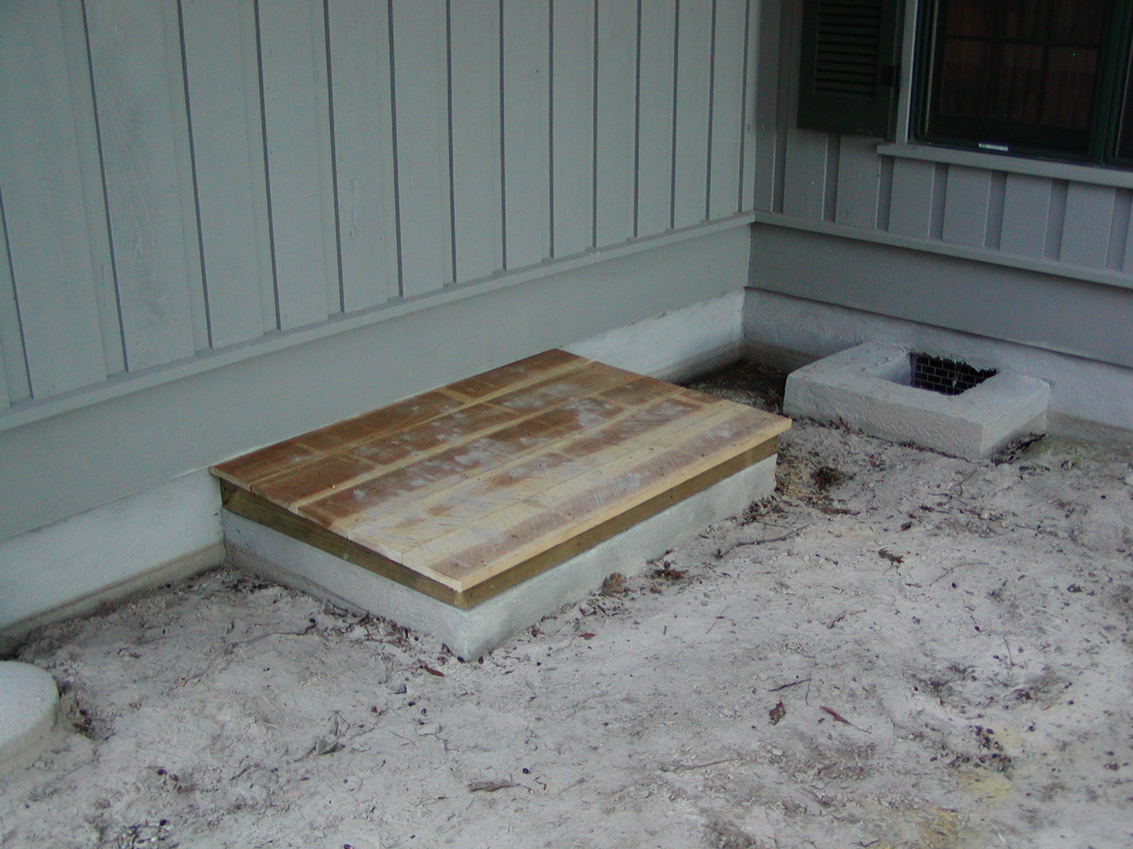 October 12, 2007 -- The access to under the house now has a cover. It can be easily removed for access. | ![]() |