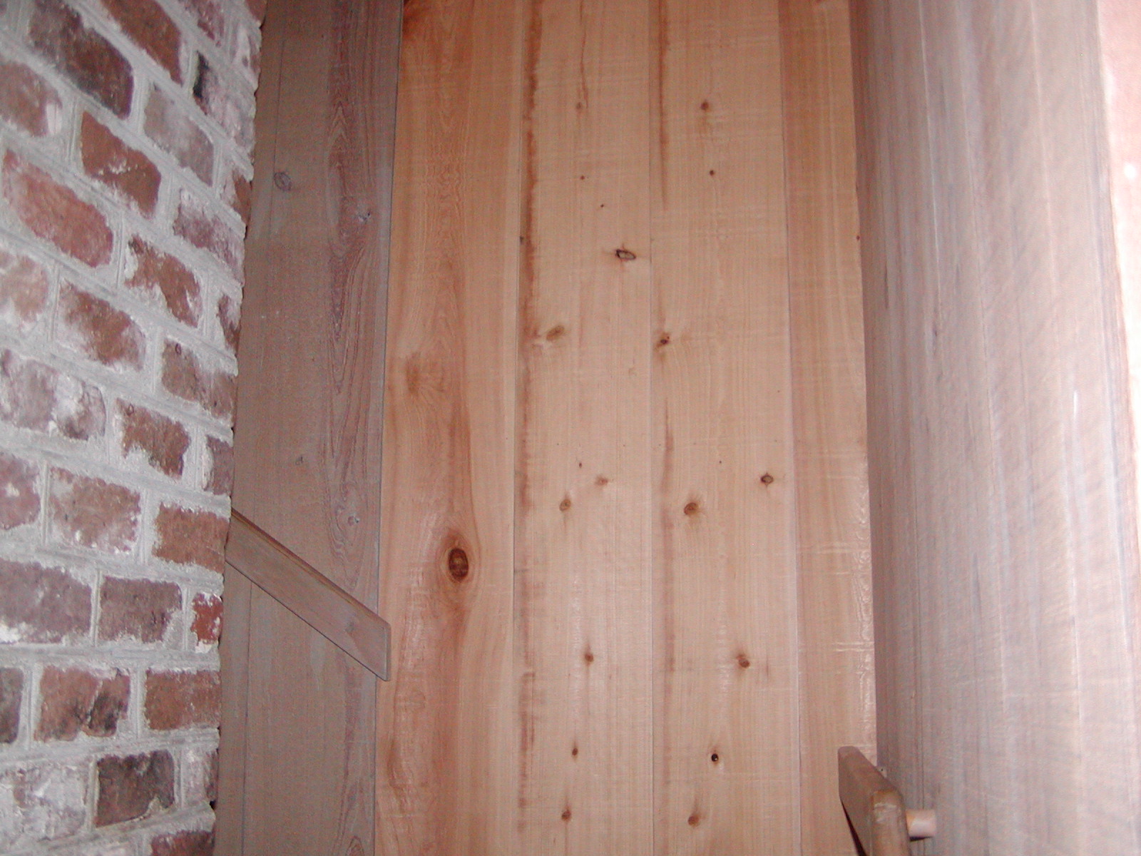 October 16, 2007 -- The cypress paneling in the stairway has been replaced where the window was removed. It will be stained to match the existing cypress. | ![]() |