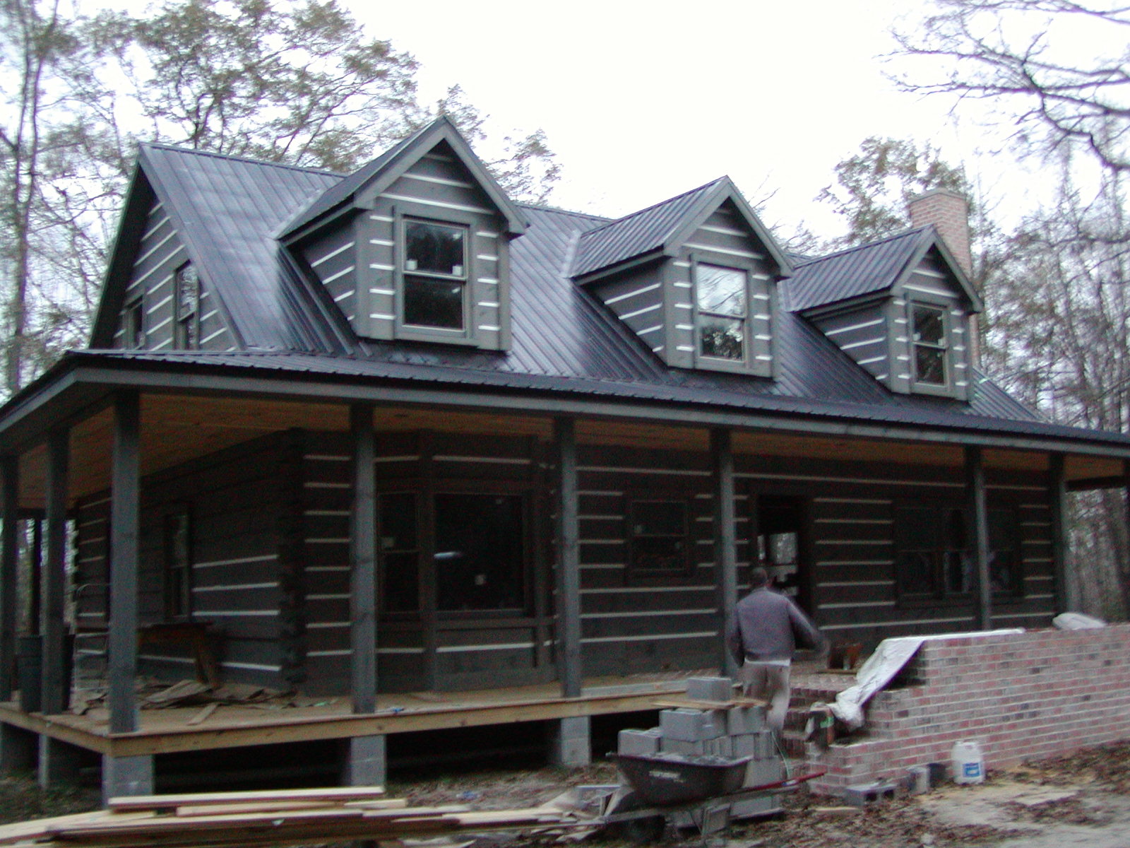 December 19, 2007 -- The chinking is nearly complete. Cold weather delayed the last bit (on the left end of the house). | ![]() |