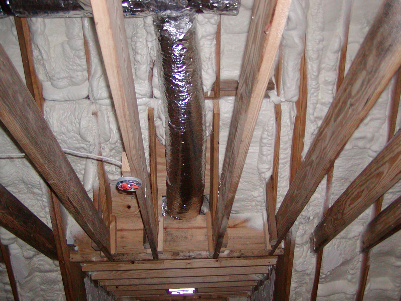 January 16, 2008 -- The insulation will keep the attic temperature very close to the inside temperature. Here you can see one of the air conditioning ducts going into a dormer. | ![]() |