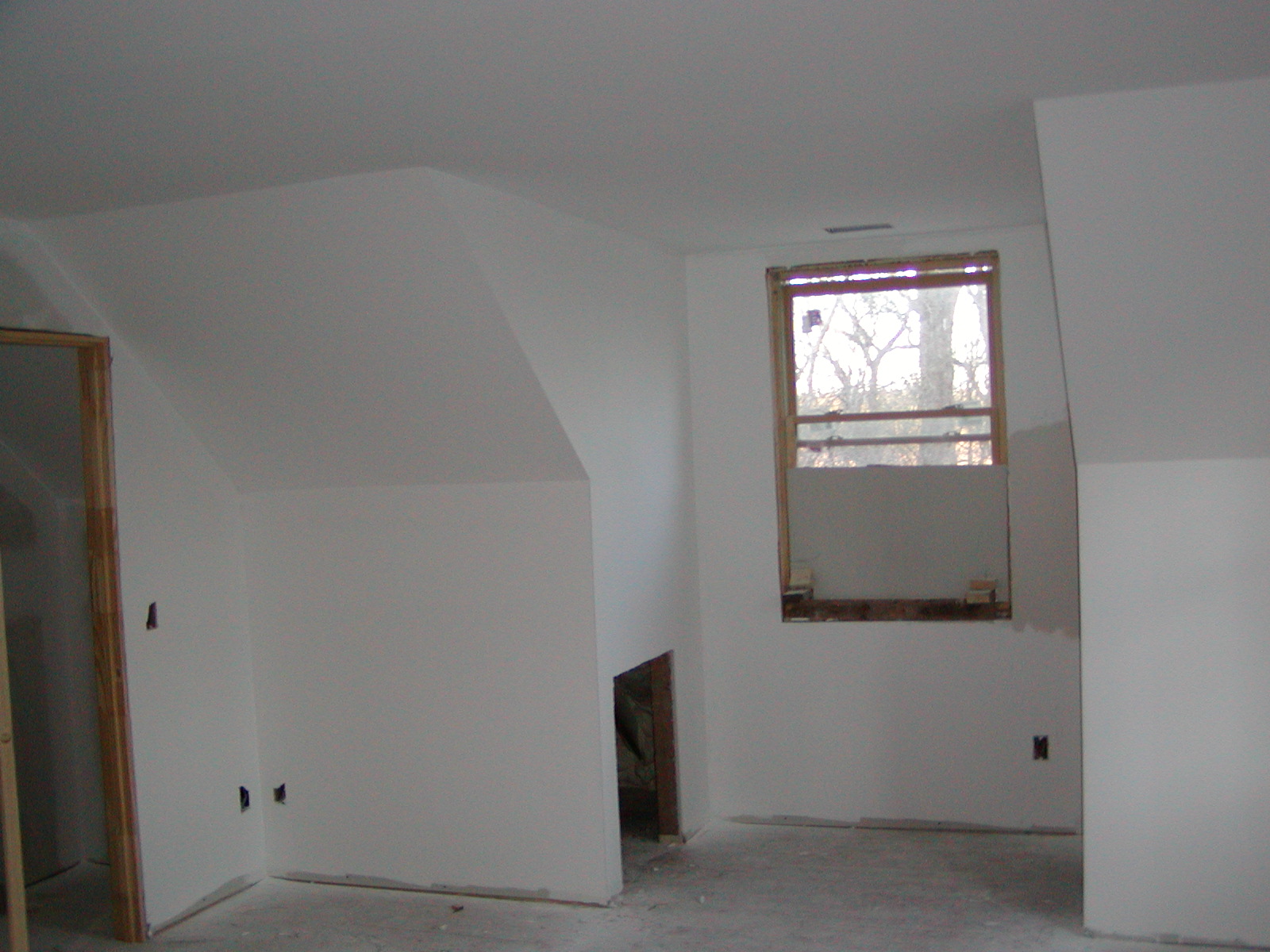February 14, 2008 -- The drywall is now primed. The small opening near the window is attic access. | ![]() |