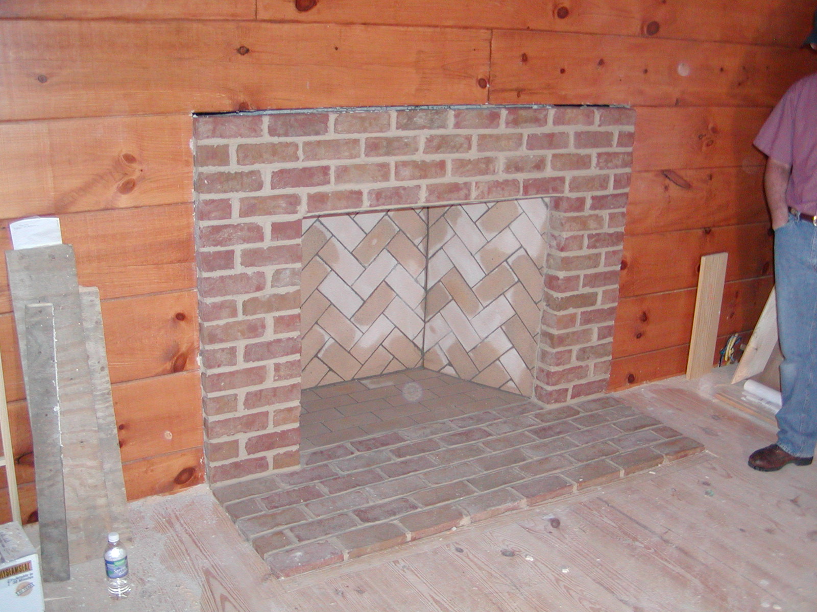 March 6, 2008 -- The fireplace and hearth brick work is complete. There will be a surround and mantle soon. | ![]() |
