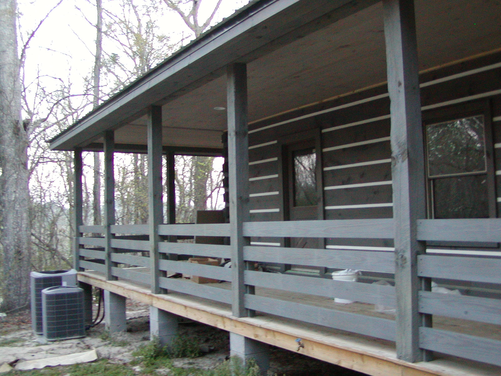 March 28, 2008 -- The porch rails are stained to match the posts. Soon, the deck will be stained a lighter shade of gray. | ![]() |
