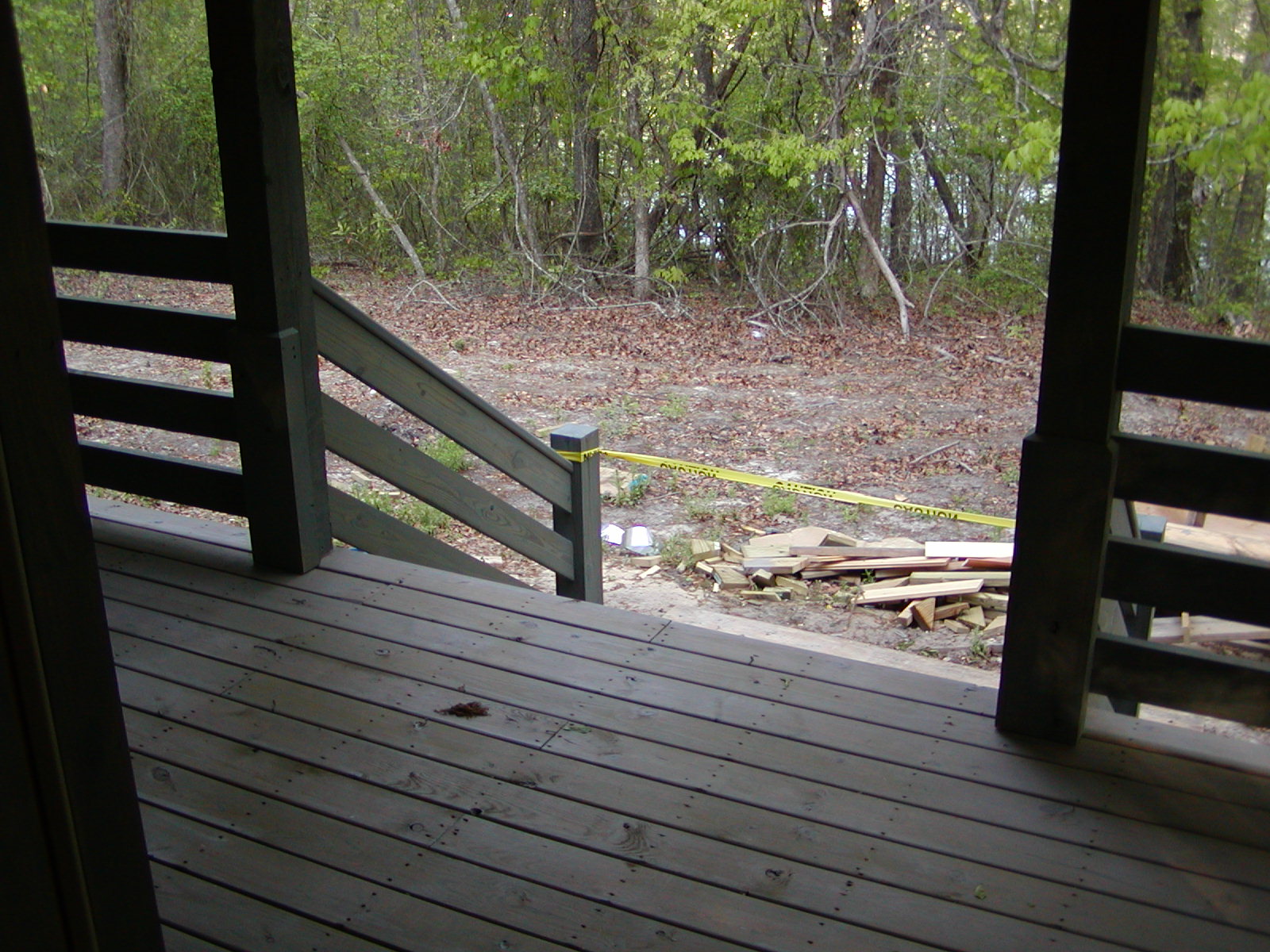 April 14, 2008 -- A third set of wooden steps has been built. Each side of the porch has steps now. | ![]() |