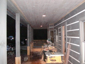 April 3, 2008 -- The house now has permanent power. Notice the porch lights. It is early morning so it looks dark outside.