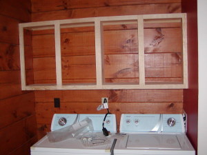 April 23, 2008 -- A cabinet has been built for over the washer and dryer. It will be stained to match the walls today.