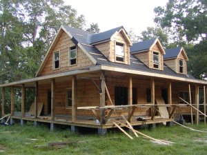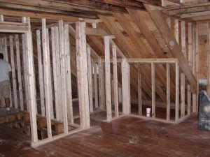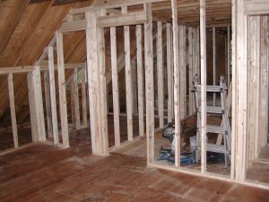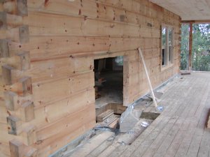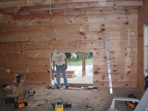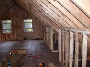 August 10, 2007 -- Framing has begun in the upstairs of the log cabin.