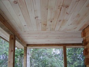 August 10, 2007 -- Three sides of the porch (left, right and rear) have a ceiling and soffit now.