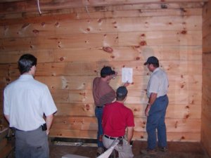 August 14, 2007 -- Where should the fireplace go? A hole has to be cut in the wall for the firebox.