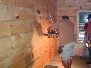 August 14, 2007 -- A chain saw is the tool of choice for cutting the logs.