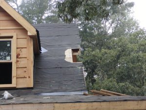 August 15, 2007 -- The roof has been cut where the chimney will come through it.
