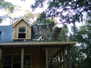 August 20, 2007 -- The chimneybrick is through the porch roof. It will be finished soon.