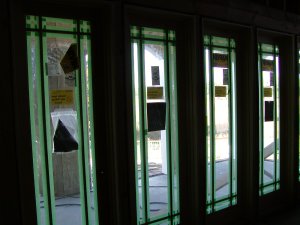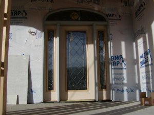 February 27, 2007 -- The windows and doors are being taped on the inside so they can be finished. This will keep them nice and clean.