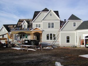 February 5, 2007 -- A view of the front of the house. Siding and roofing are progressing.