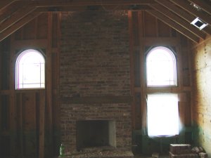 February 9, 2007 -- Inside, the chimney is complete. It does not have the mantle or hearth installed yet.