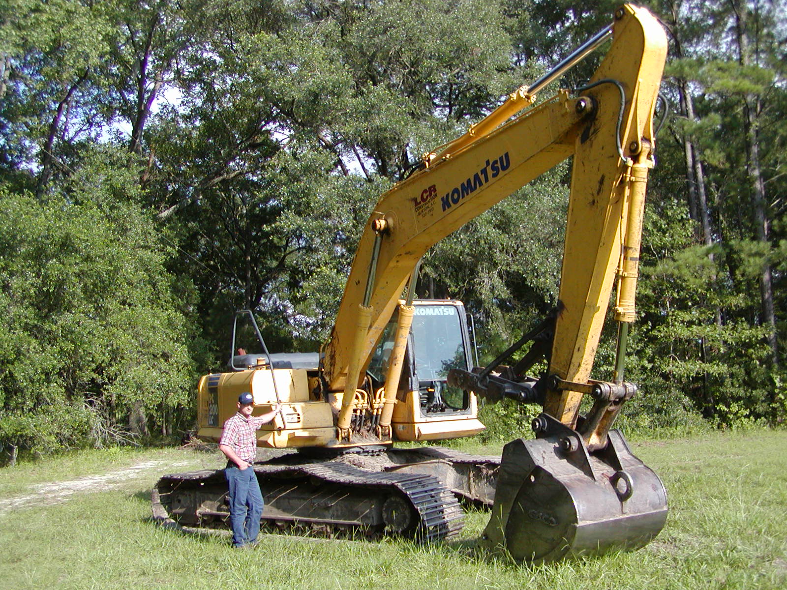 July 31, 2007 -- The track hoe for clearing arrived today. It is rather large compared to Willis, our VP. Willis is about 6 feet tall. | ![]() |