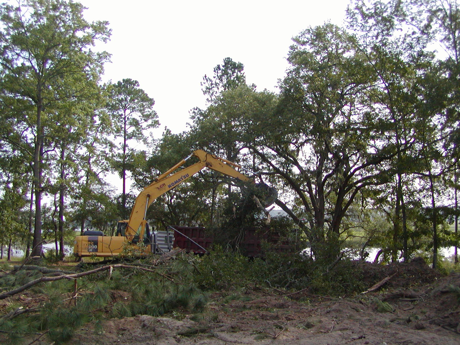 August 2, 2007 -- The lot is about cleared now. It does not take many loads from the track hoe to fill the truck. | ![]() |