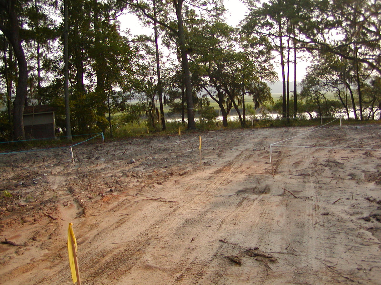 August 15, 2007 -- The surveyor has staked out the house so the health department can place the septic tank and drain field. | ![]() |