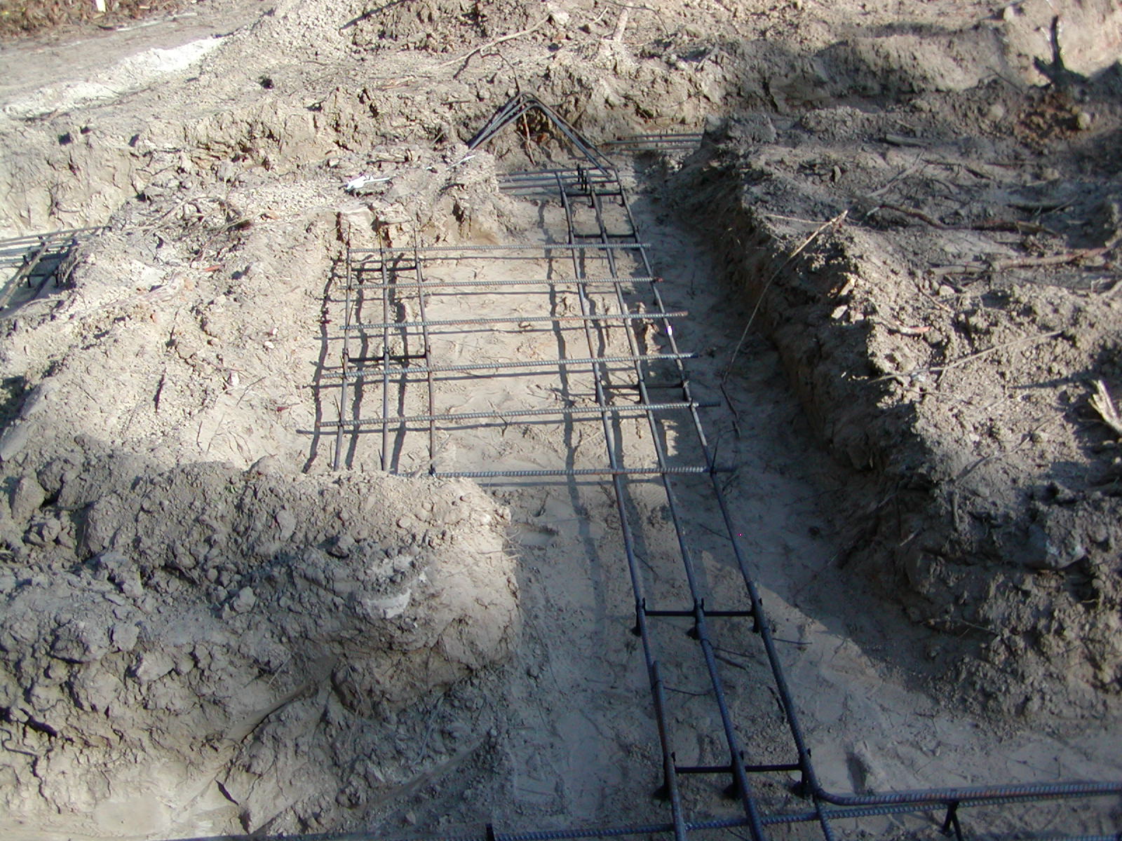 September 11, 2007 -- The chimney gets a special large foundation to support it. Steel rebar is placed where the footers will be poured. The rebar on the far side has not been placed yet. | ![]() |