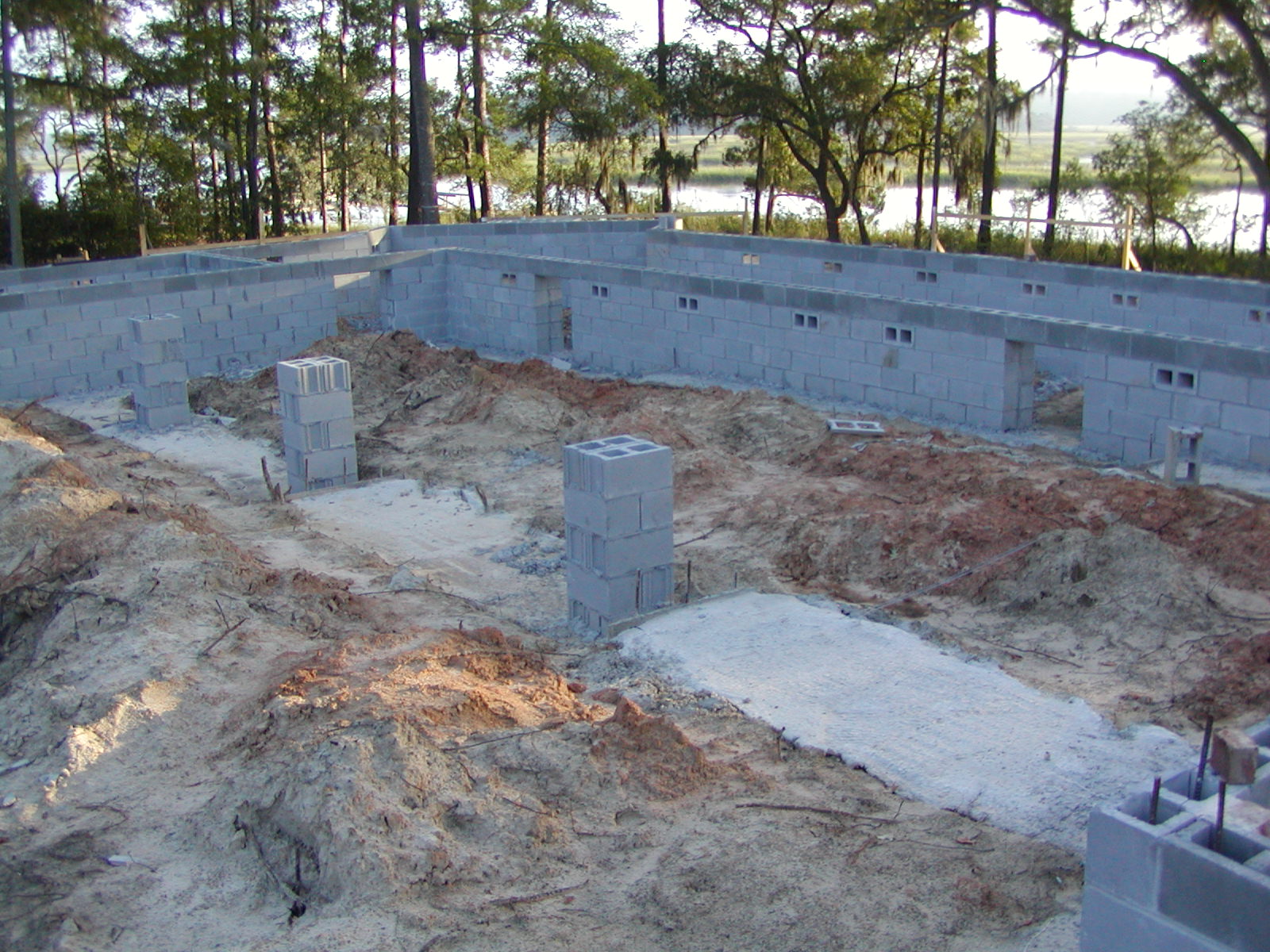September 26, 2007 -- The center piers are resting on a substantial footer. All footers are connected in the house. The dirt will be leveled and a concrete dust cap poured. | ![]() |
